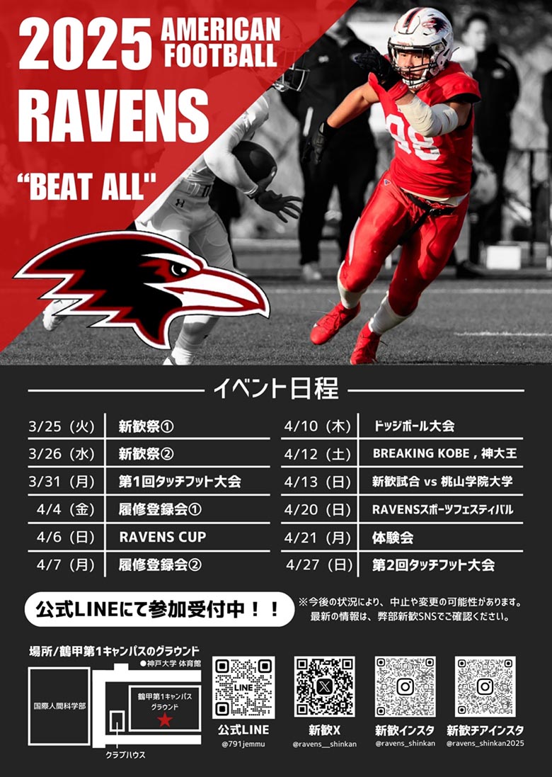 神戸大学最大級の部活動であり、約180名が所属します。関西学生アメフトリーグの1部に所属し、シーズン中には強豪校との試合を繰り広げます。週5回の活動で、「日本一」を目標に日々取り組んでおります。本気で練習し、オフには全力で楽しむメリハリのある部活です!