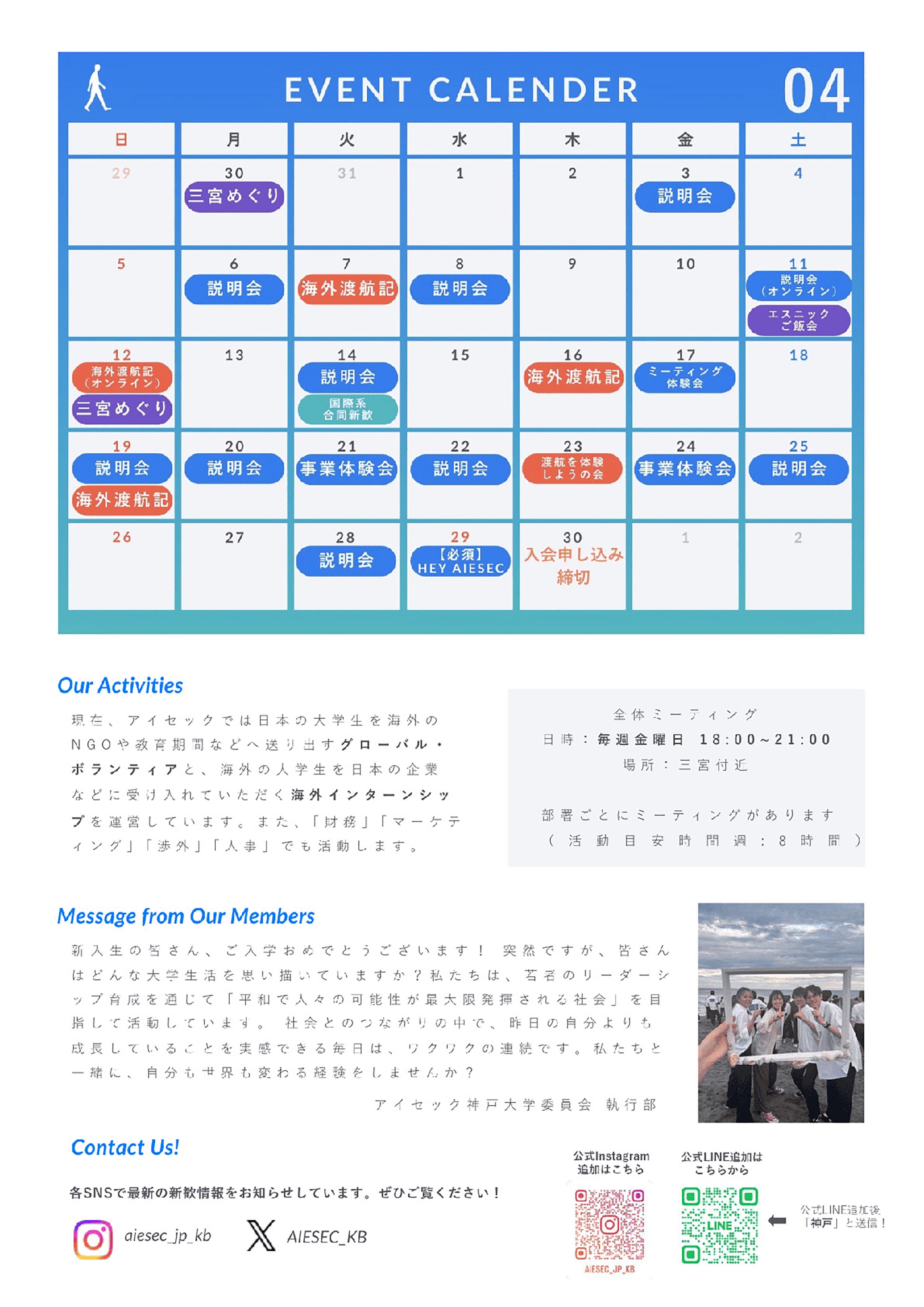 | 3月 | 海外インターンシップ運営、冬合宿 |