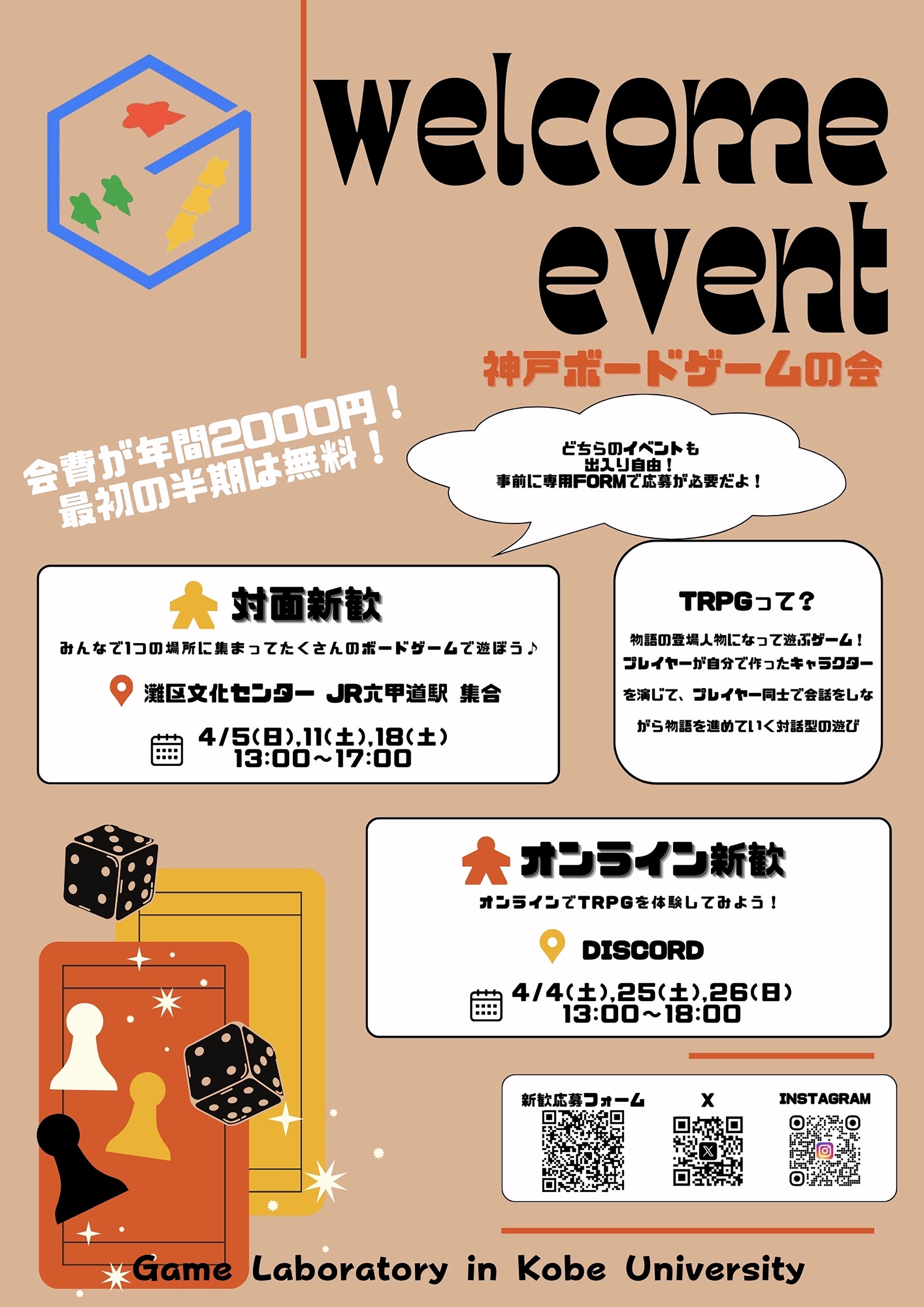 みんなでボードゲームを持ち寄って遊んだり、オンライン上でTRPGをプレイしたりして楽しく活動しています!他団体と掛けもちしているサークル員も多く、遊びたい時に遊べる自由度の高いサークルです!不定期ですが他大学との交流も行ったりしています!