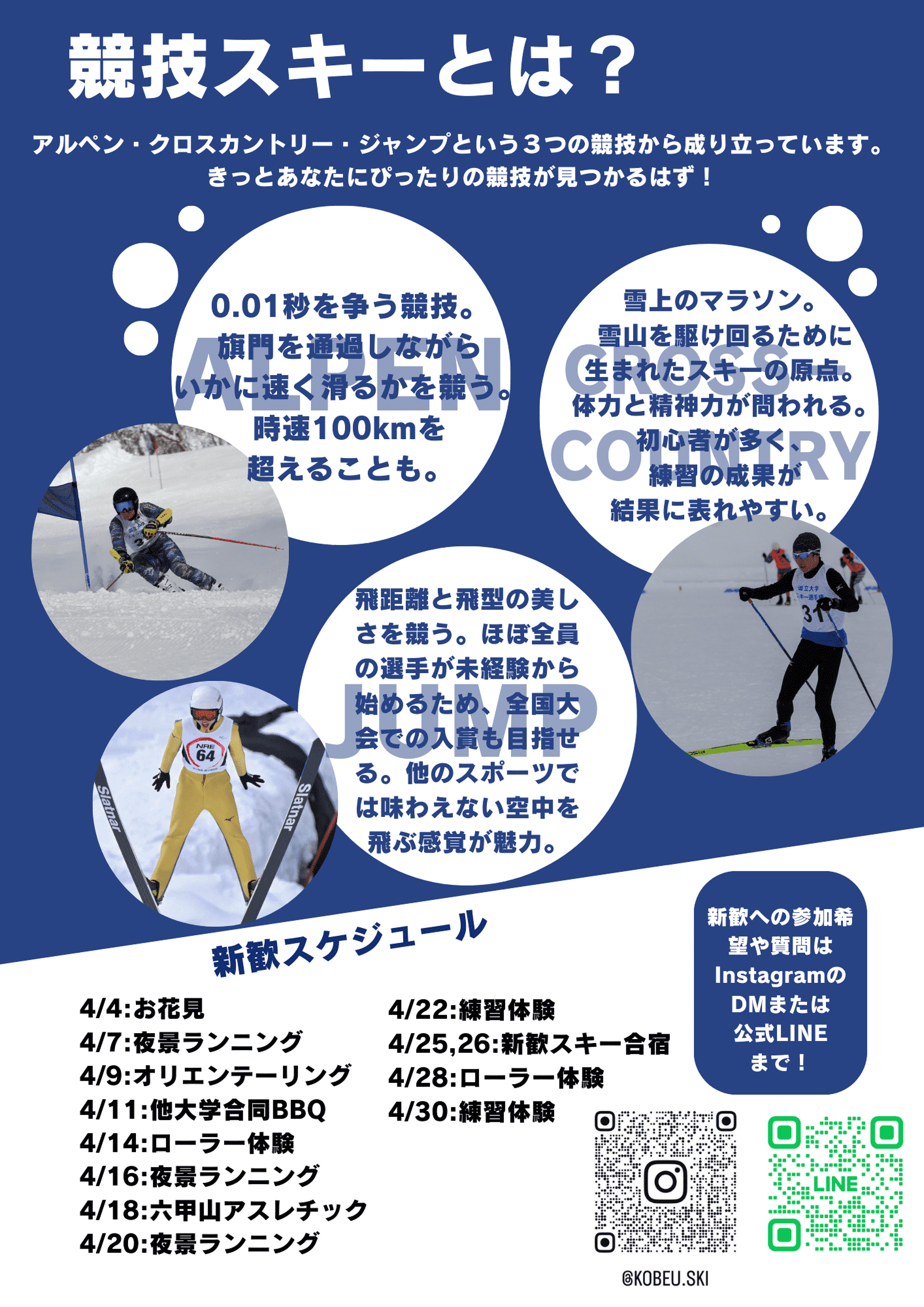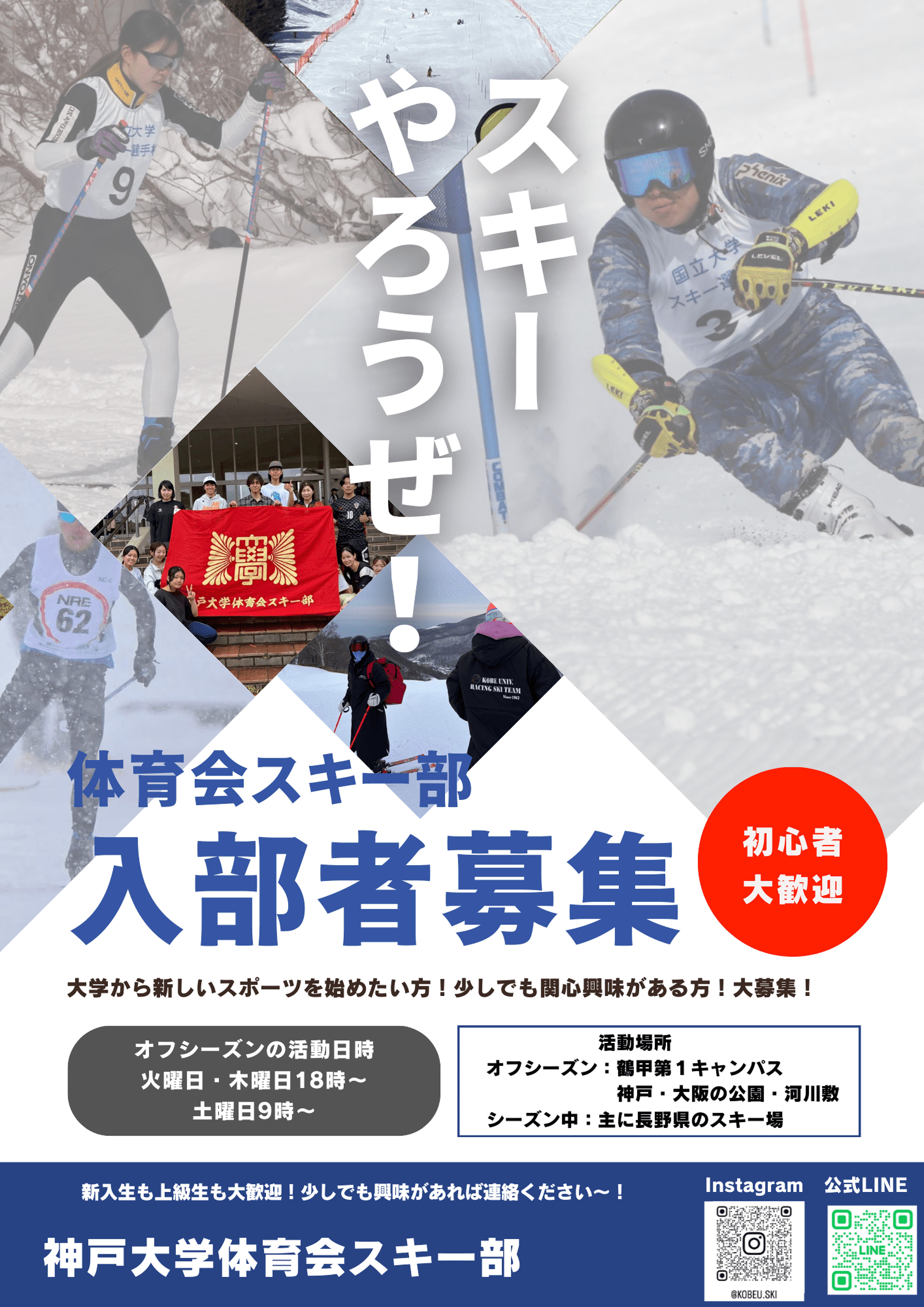 スキーに対しては本気で取り組んでいます。 私は去年入部した初心者ですが頼りになる先輩ばかりで、技術面でも成長を感じています。部活終わりにご飯を食べに行ったり、オフの日に遊びに行ったりするほど仲良しです。部員とおしゃべりするだけでも大丈夫なので新歓に来てくれると嬉しいです。 皆さんと会えることを楽しみにしています!