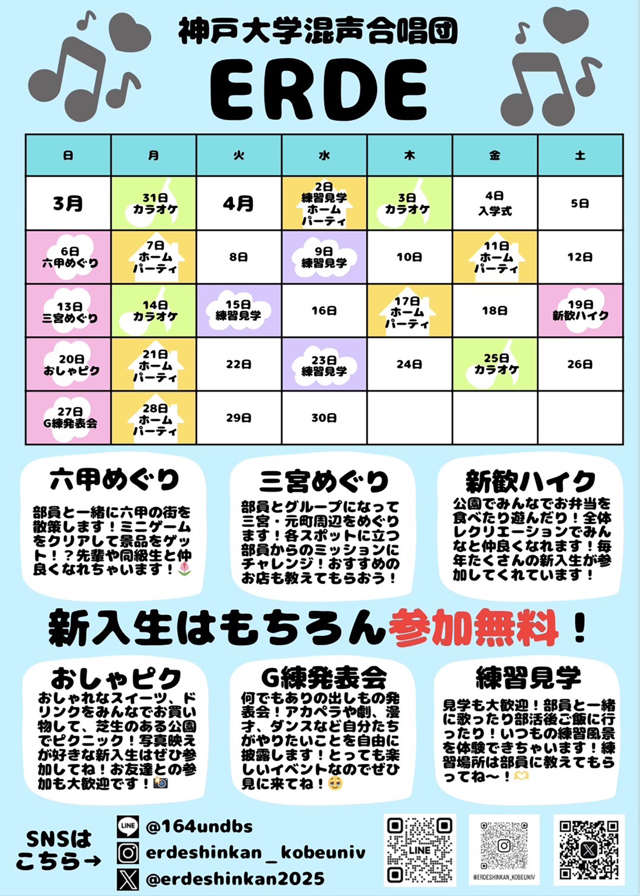 エルデは、合唱だけでなく、イベントや遊びも充実しています!部員も多く、色々な人と友達になれ、充実した大学生活を送れること間違いなし!合唱をやりたい人も、たくさん遊びたい人も、どんな人でも大歓迎です!