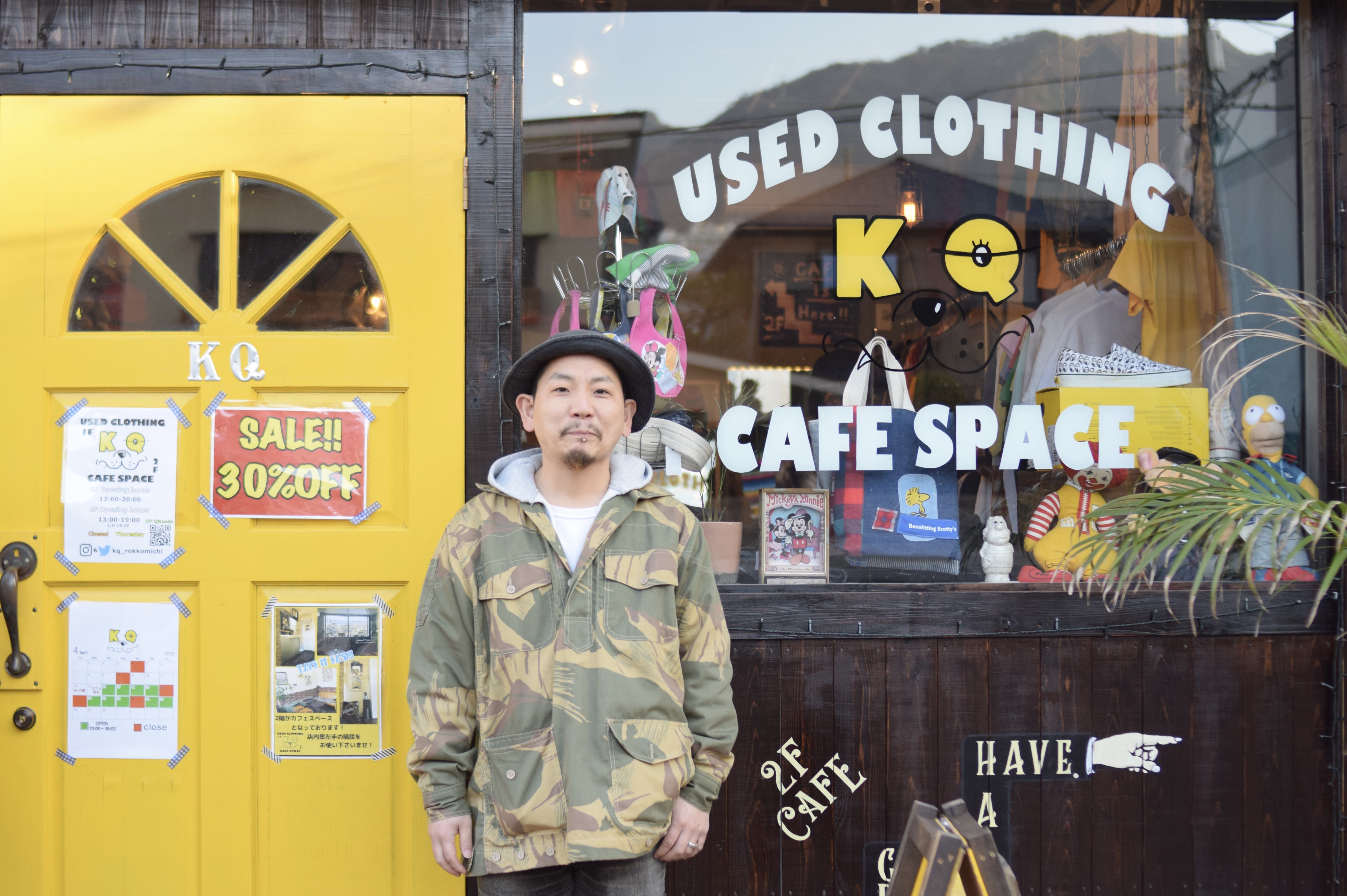昨年9月に六甲道の少し上、山幹沿いに黄色い扉のなんだかおしゃれなお店が現れた。入ってみると雰囲気の良い古着屋さん。気になる服を手に取ると、良心的な値段にこっちが心配になってくるほど。そんなKQの店長さんの情熱に迫る。
