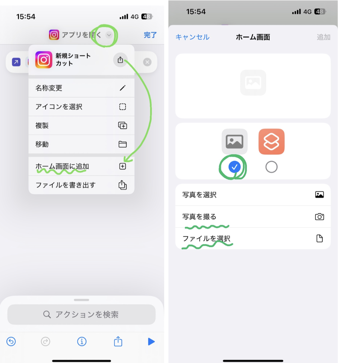 ③アイコンを可愛くしたいアプリを選択(今回はInstagramにしてみました)