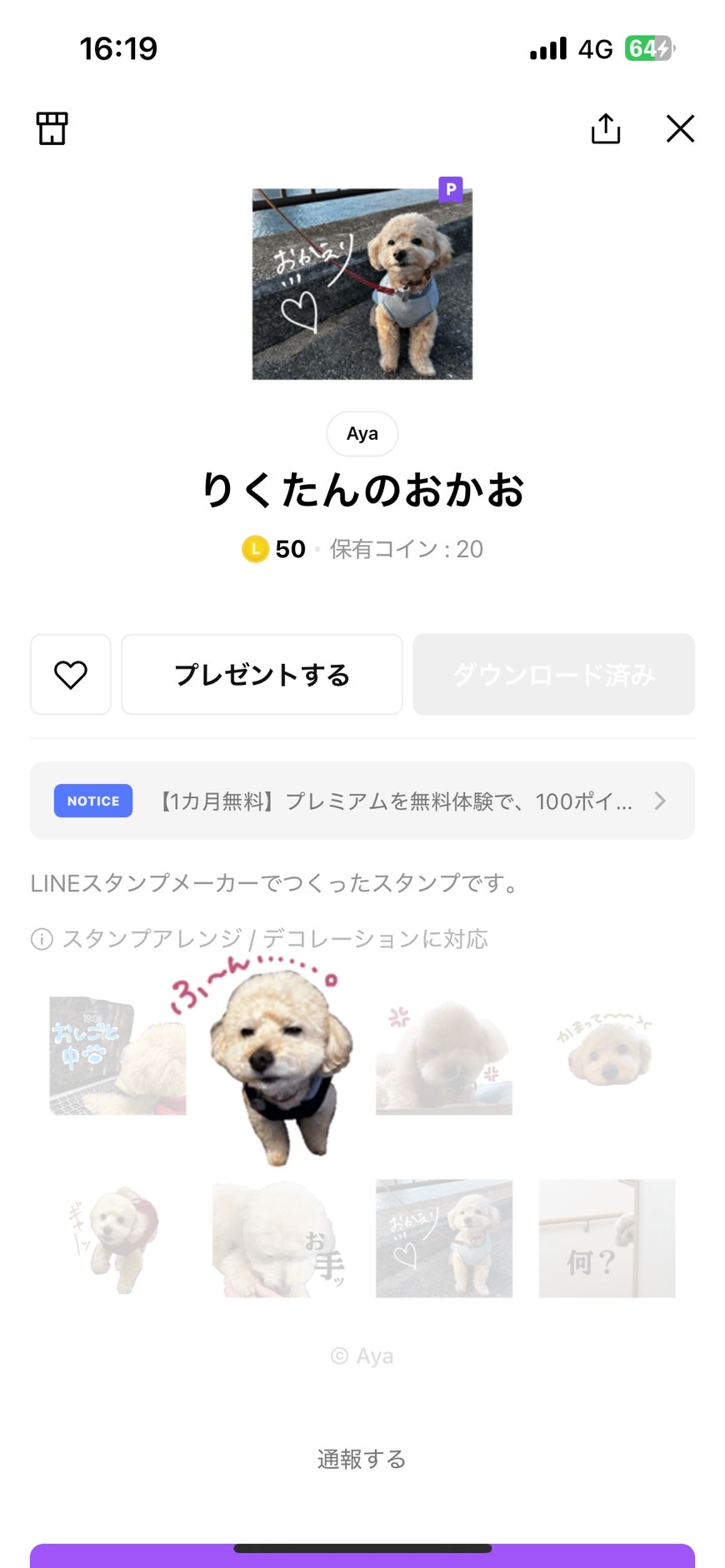 筆者は実家の犬をスタンプにしましたが、製作者は無料でそのスタンプを利用できるのでオススメです。なんともいえないクオリティですが、家族には好評です。サークル内の人物でスタンプを作ると身内ネタとしてかなり盛り上がります。ちなみに筆者は、次に作るスタンプは「絶起」「バおわ」「落単」「授業こないの?」など、実用的なものを作りたいと考えています。