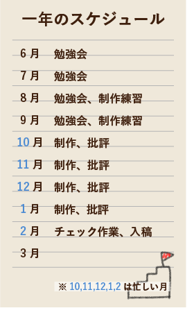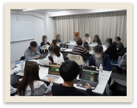 みんなで批評しまくってるとき。自分の制作物について色々意見とか知識とか貰えたり、みんなのデザインやその経過を見たりできる大事な時間です!